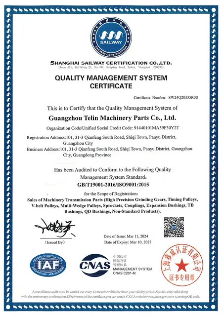 Our main products consist of high-precision gears, synchronous pulleys, sprockets, European standard pulleys, American standard pulleys, multi-ribbed pulleys, couplings, expansion sleeves, TB cone sleeves, QD cone sleeves, connecting discs, and various customized non-standard products. These products are widely used in diverse equipment such as lithium battery equipment, photovoltaic equipment, wind power equipment, new energy equipment, aerospace, carton printing machines, dyeing and finishing machinery, fans, ventilation equipment, CNC processing machinery, automation machinery, food mixing machinery, chemical machinery, laser machinery, the automobile industry, mining machinery, and many other fields.